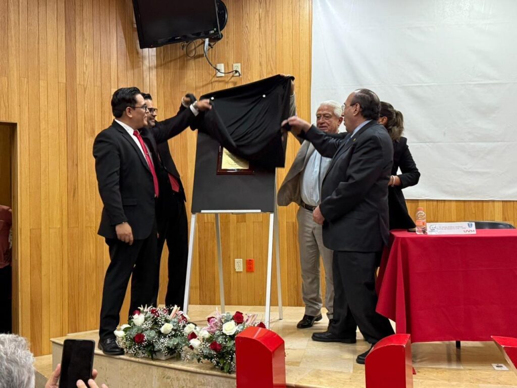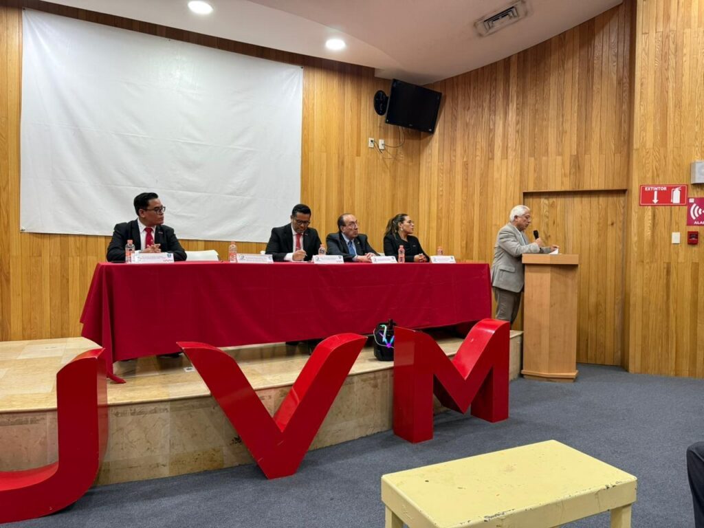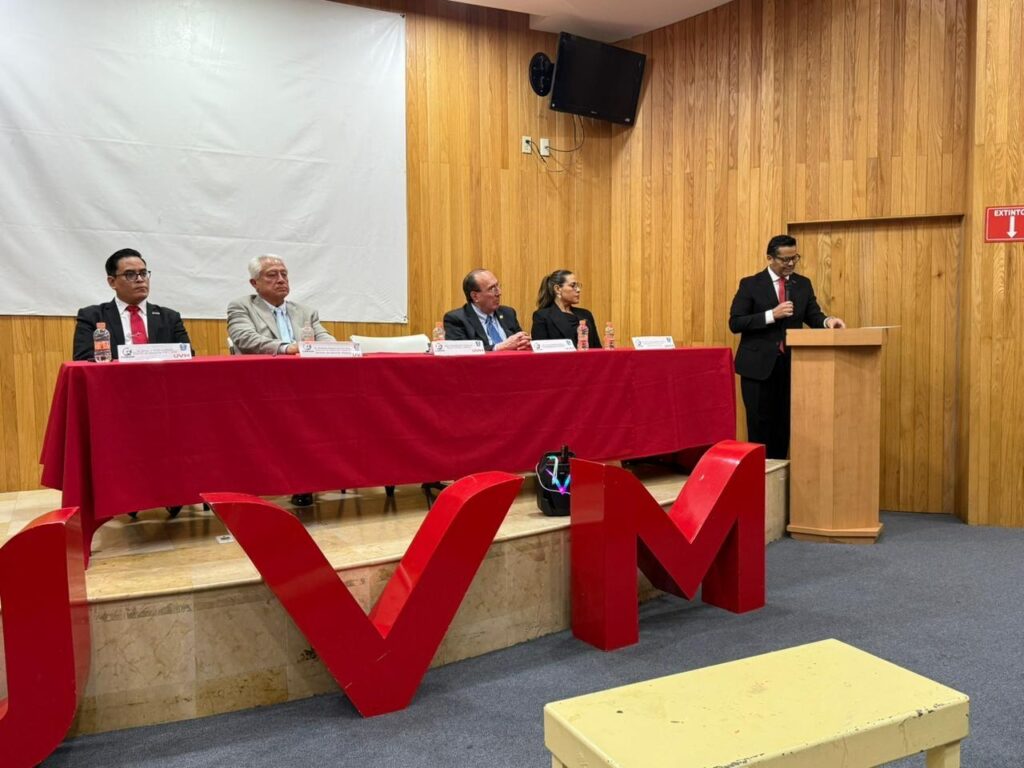 El presídium estuvo integrado por el Dr. Roberto Alonso García Díaz, Director de Atención Médica de los Servicios de Salud de Veracruz; el Mtro. Yahel Riveroll Velázquez, Rector de UVM Veracruz; la Dra. María José Nogueda Orozco, Directora de la Escuela de Ciencias de la Salud; y el Dr. Omar Jiménez Martínez, Director de Medicina UVR UVM Veracruz.