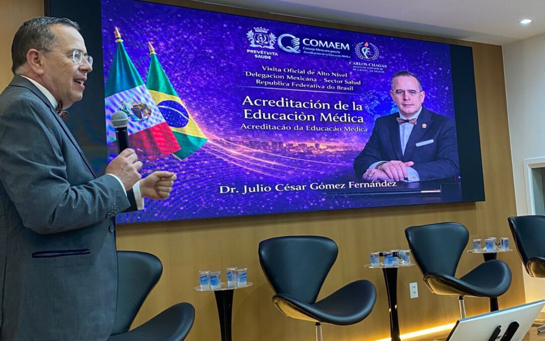El Dr. Julio César Gómez Fernández, Presidente del COMAEM, participó en las sesiones de trabajo e intercambio institucional, destacando la importancia de la acreditación de la educación médica como un elemento clave para garantizar la calidad en la formación de profesionales de la salud.
